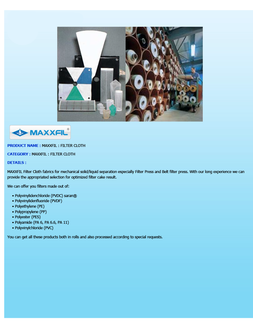 PRODUCT NAME : MAXXFIL : FILTER CLOTH